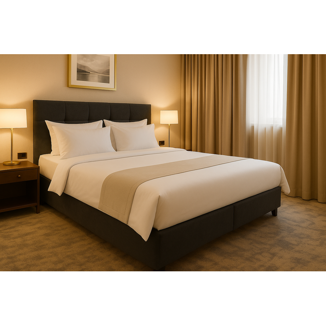 Hotel Boxspring FLETCHER compleet met 7-zone pocketveermatrassen, 10 cm. dikke HR 55 topdek matras en hoofdbord.