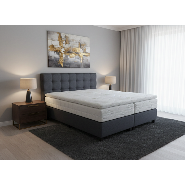 De Hilton Luxury biedt de perfecte combinatie van stevigheid, comfort en hygiëne. Dankzij de bonell geveerde box, 7-zone pocketvering en HR-topdekmatras ervaart u elke nacht een uitgeruste slaap. Bovendien is dit outletmodel eenmalig verkrijgbaar in de kleur antraciet (180x220 cm. Let op: dit model is alleen leverbaar zolang de voorraad strekt.