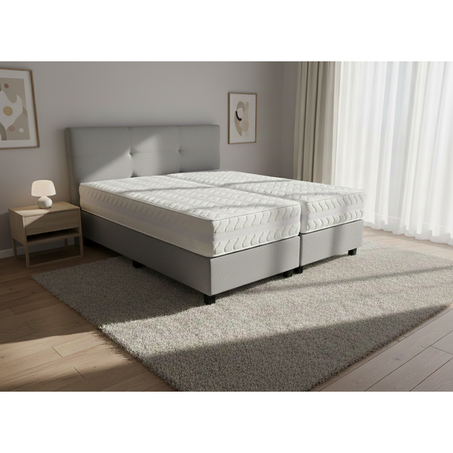 160 x 200 / 2 x box 80 x 200 + 2 x matras 80 x 200 en gecapitonneerd hoofbord Nu € 849,-