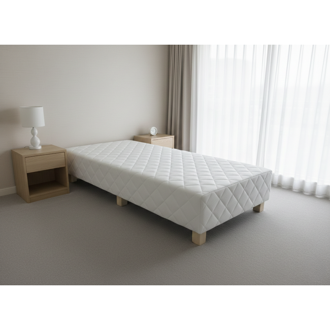 De 1-persoons bonell geveerde box is voorzien van 7 rechthoekige blank pootjes.