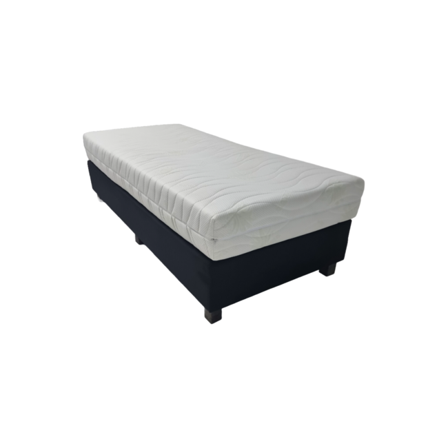 90 x 210 / 1 x in kleur gestoffeerde bonell geveerde box 90 x 210 incl. pootjes en 7-zone POCKETVEERMATRAS Nu. €. 359,-