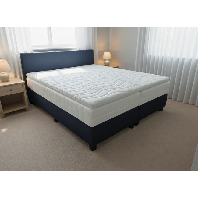 # 140 x 210 / 2 x bonell geveerde box 70 x 210 + 1 x 7-zone pocket + 1 x 6 cm dikke matrastopper + Hoofdbord Nu. €. 859,-